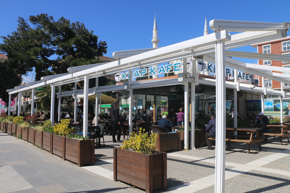 Salih Omurtak Caddesi üzerinde bulunan KİTAP KAFE içerisinde kapalı alanı ve açık alanı ile vatandaşlarımıza kaliteli ve uygun fiyatlı hizmet vermektedir.