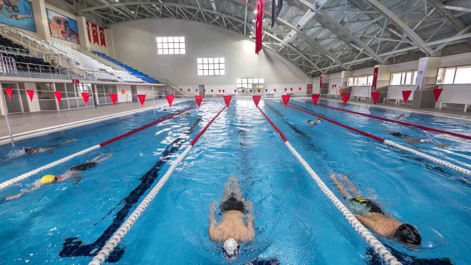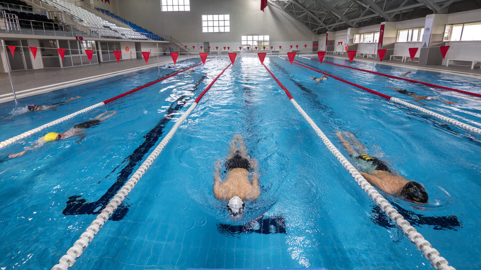 Tesisimizde yarı olimpik yüzme havuzu; 6 kulvar ve 3 çırpınma havuzundan oluşmaktadır. Tesisimizde yüzme hocalarımız tarafından temel eğitim ve performans eğitim hizmeti verilmektedir. Yetiştirilen performans sporcuları yarışmalara katılmaktadırlar. Sporcularımız Türkiye Yüzme Federasyonu yarış takvimindeki yarışlara katılmakta ve yüzme branşına destek vermektedir.
